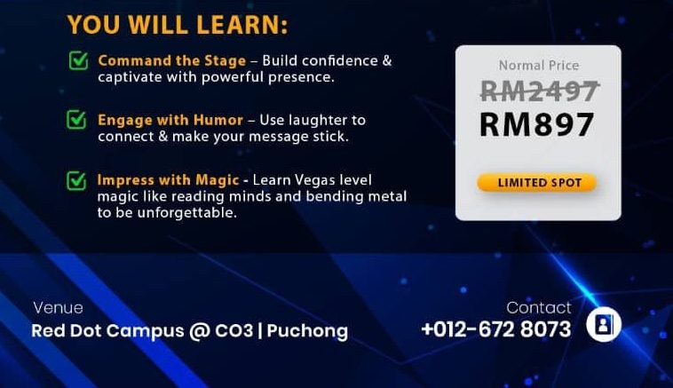 The Stagecraft Masterclass will be held at CO3 in Puchong.
